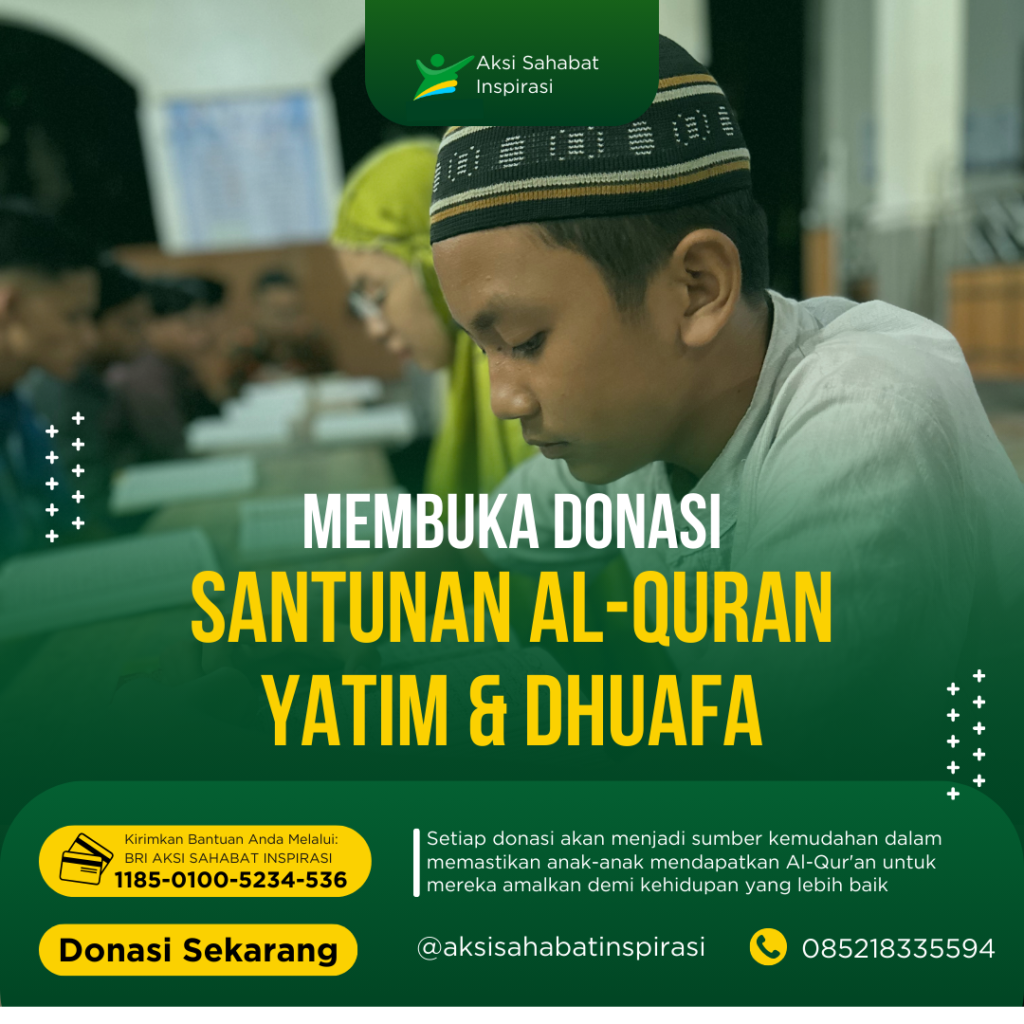 Lembaga Aksi Sahabat Inspirasi membuka open donasi untuk mendukung berbagai program kebaikan, di antaranya: santunan untuk anak yatim, penyediaan Al-Qur’an, program Nasi Sehat Jum’at Berkah, serta bantuan untuk saudara-saudara penyandang disabilitas. Mari bersama berbagi kebaikan dan memberikan manfaat bagi mereka yang membutuhkan! 🌟